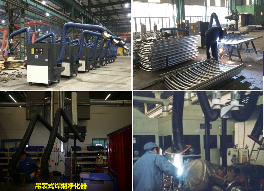 焊接,利用電加熱,使得熔點(diǎn)溫度較低的金屬焊條融化到液態(tài)或者近液態(tài),填充到待焊接的金屬縫隙,使得兩者牢固結(jié)合在一起。在焊接過程中產(chǎn)生的污染粉塵廢氣量并不大,但是比較集中,而且距離工人作業(yè)位置近。所以,會(huì)導(dǎo)致各種職業(yè)病如焊工硅肺、錳中毒、電光性眼炎等。所以,焊接煙塵粉塵處理顯得尤為重要。