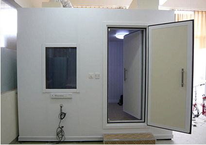 2、箱體的內(nèi)外殼采用2-3mm的冷扎鋼板,經(jīng)過沖壓、焊接、酸洗、噴涂制作而成的,內(nèi)部采用3-6層的阻尼、隔聲、吸音材料制做而成的復(fù)合隔聲墻板。3、根據(jù)客戶的使用要求,我們把墻體厚度設(shè)計,為150mm-500mm,門設(shè)計為單道和雙道隔聲吸音門。