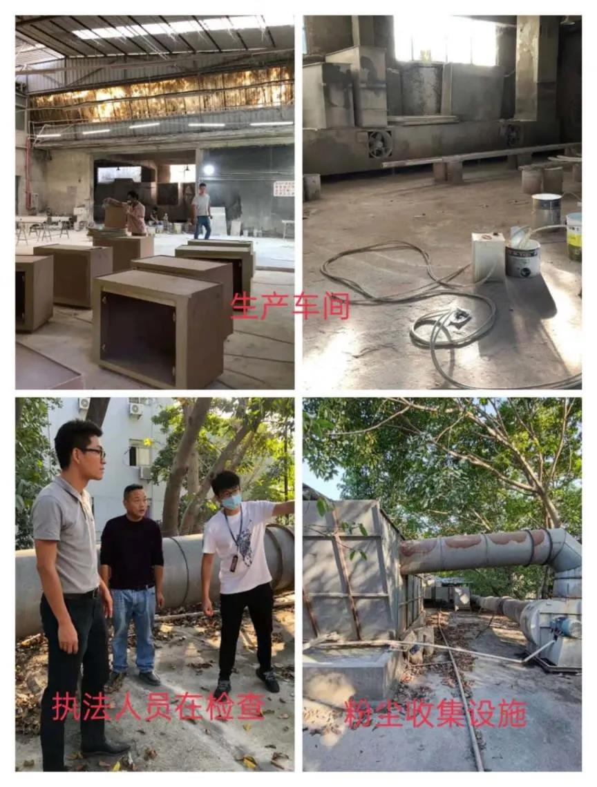 現場檢查時,該單位打磨工序正在生產,雖配套粉塵收集房,但現場沒有開啟粉塵收集,產生的粉塵無組織排放。